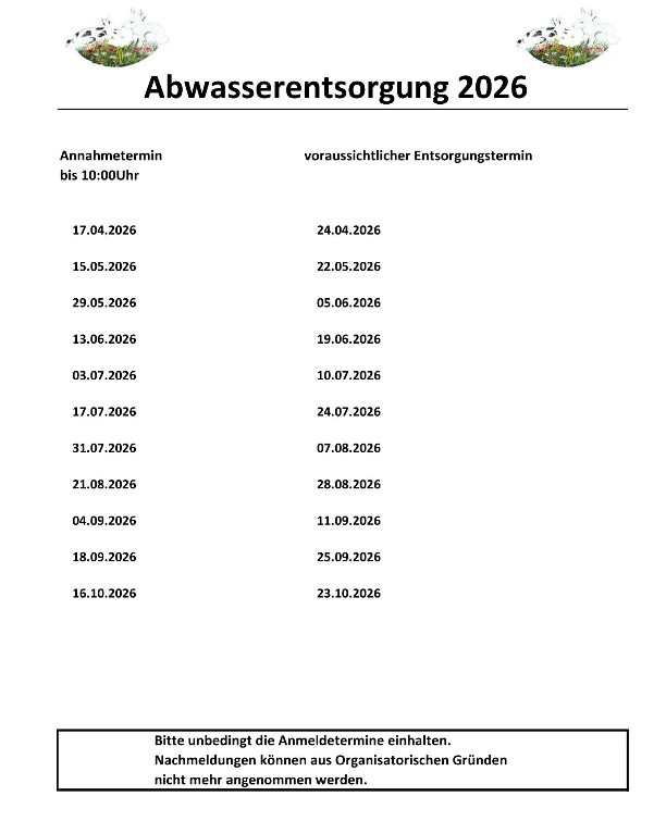 Preise gelten nur zu den vorher abgestimmten Entsorgungsterminen incl.19% MwSt. Die Zahlung erfolgt in bar vor Ort an den Entsorgungsbetrieb des Auftraggebers bzw. Unterpächter selbst.